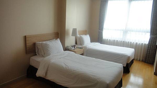 一大床的房間(我記得當時訂的是兩小床房型,可能飯店搞錯了,後來就換了),木質的地板及傢俱讓人感覺很乾淨、溫馨。