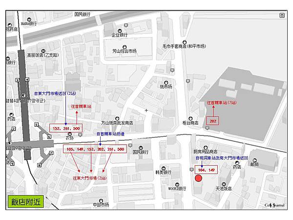 Ramada Seoul Dongdaemun Hotel附近公車站及市區巴士資訊,從明洞搭乘104號公車,可以直接在飯店門口下車喔! 超爽!